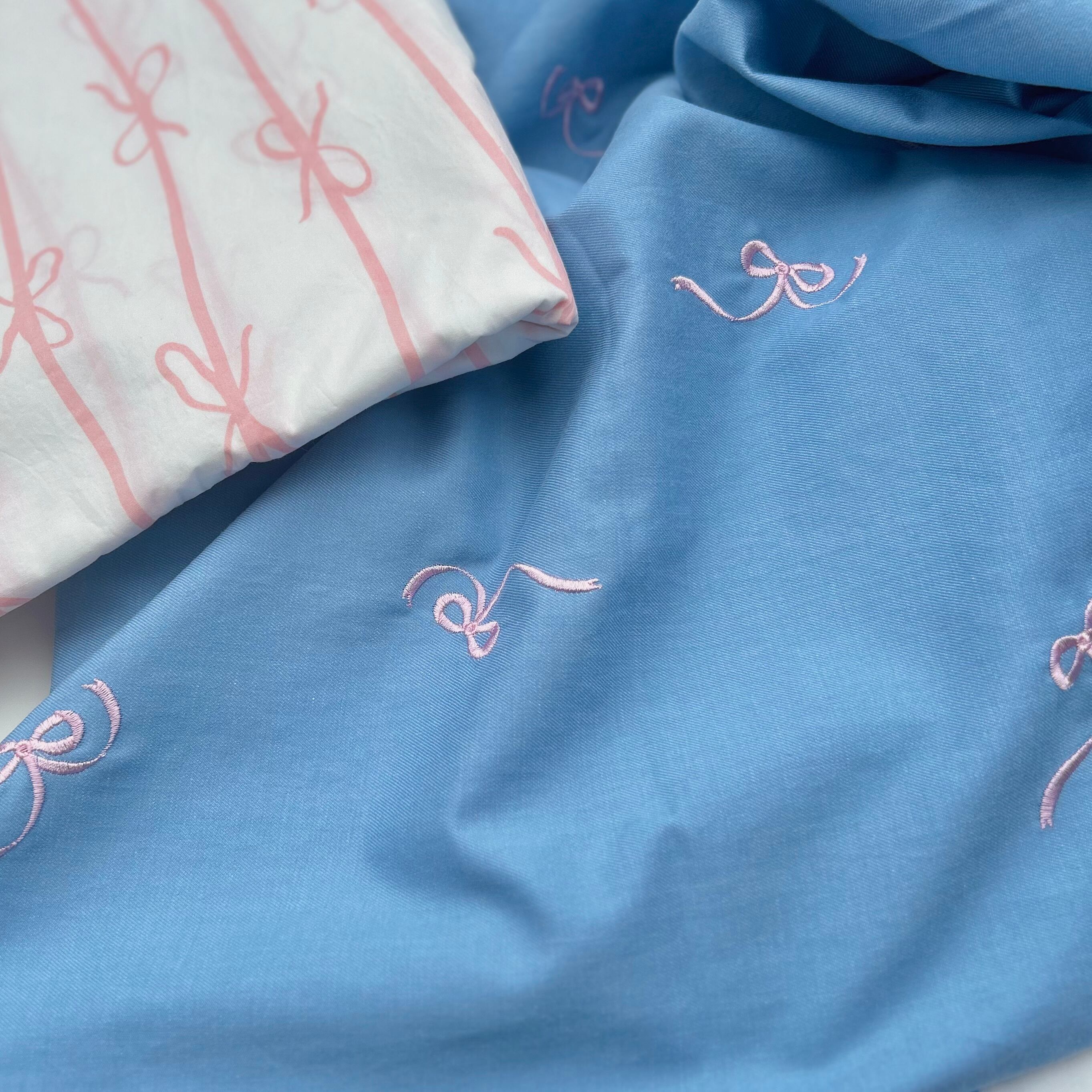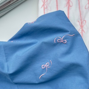 リボンが舞うデザインがとてもかわいらしく、トレンドのバレエコアデザインど真ん中な生地♡