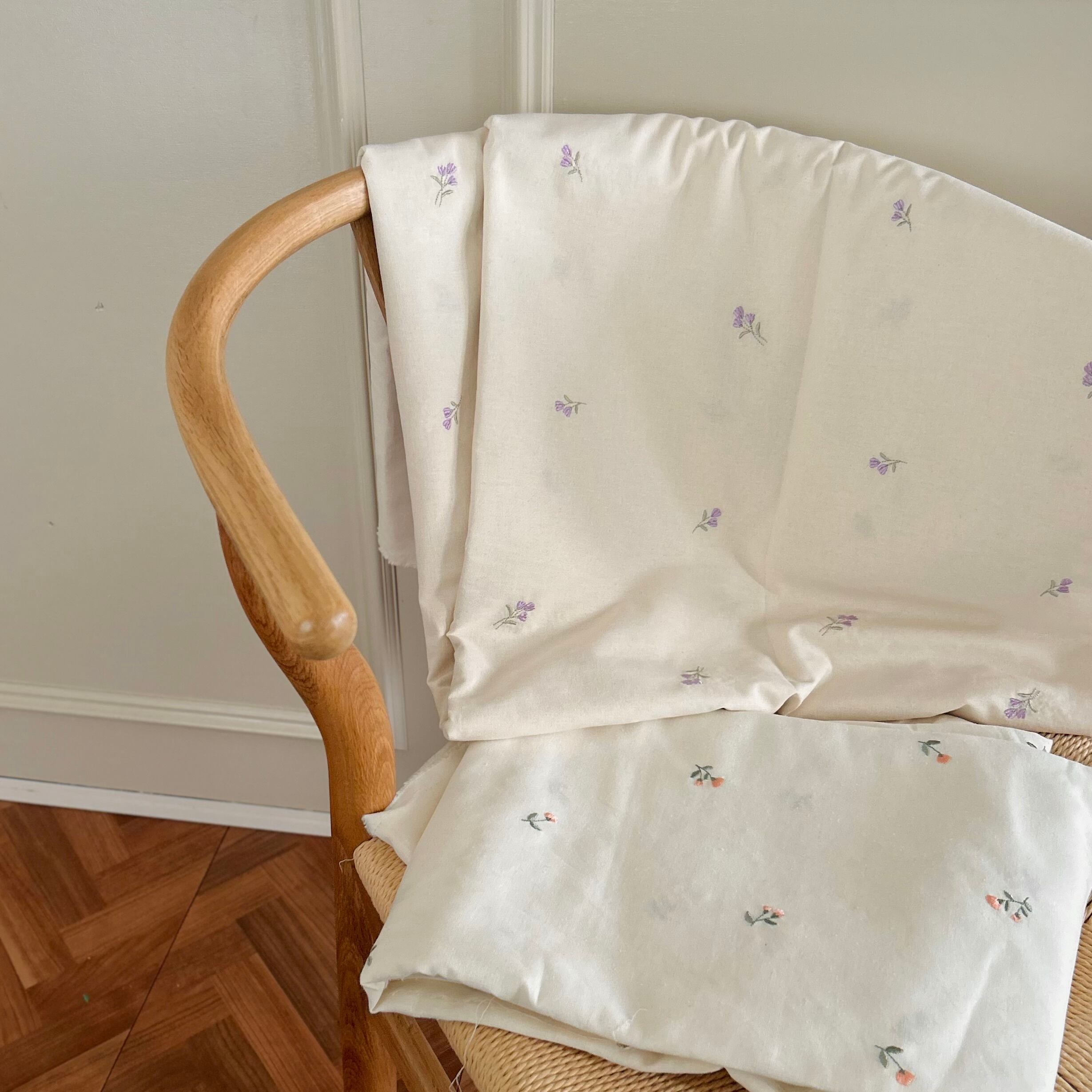1つ1つのライラックの刺繍も丁寧で、ナチュラルだけどおしゃれな韓国っぽさを表現できる生地かと思います♡